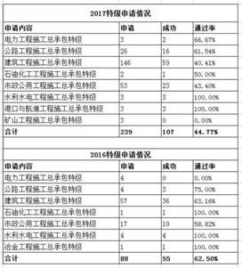 对比2016年和2017年的特级资质申请情况,可以看出,特级资质申请也在紧缩,虽然通过率下降,但申请数量呈几何级增长,成功数量也有较大增长。这点,我们可以从下图看的更明显。
